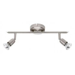Estructura metálica acabado cromo satinado. Conexión directa a red. Lámparas GU10 incluidas. 2. 2x50 W.