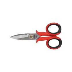 Mangos argonómicos antideslizantes bimaterial. Hojas de 3,5 mm. acero inox 420 J2, acabado pulido. Filo microdentado antideslizante. Dureza de filos 52-54 HRC. Hoja con hendidura pelacables. 146 mm.