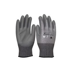 Poliester/fibra de vidrio, sin costuras con recubrimiento de PU en la palma. Color gris. Alta resistencia al corte, abrasión y desgarro. Excelente agarre en seco y húmdo. Uso: automóvil, vidrio, reciclado, embotellado y envasado, etc. Talla 9