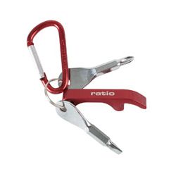 Mosquetón y descapsulador de botellas en aluminio anodizado. 2 puntas de atornillado cromo-vanadio. Plana : 5 mm. Phillips : Nº 2