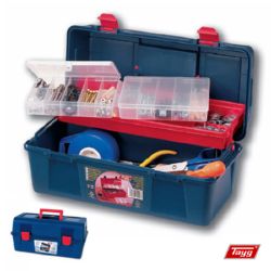 Caja plástico.Contiene 1 bandeja portaherramientas + estuche interior portatornillos.Medidas: 400 x 206 x 188 mm.