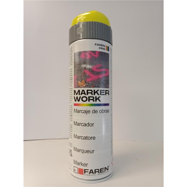 MARKER WORK es una pintura de marcado fluorescente para la industria de la construcción. Es especialmente adecuado para señalizaciones temporales en las siguientes áreas: Señalización de obra, estacas, señalizaciones diversas. Permite marcajes muy visibles gracias a su alta concentración de pigmentos altamente fluorescentes. Su fórmula le confiere una excelente adherencia sobre hormigón, asfalto, grava, césped y madera.