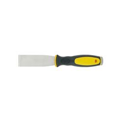 Hoja acero inoxidable rígida, grosor 1,8 mm. Mango bimaterial antideslizante. Cabezal metálico resistente a los impactos. Recta 30 mm.