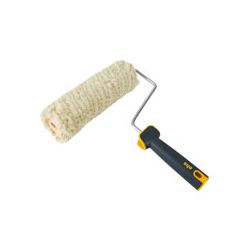 Fibra 100% poliamida, 19 mm. Blanca con rayas verdes. Mango soft-touch negro y amarillo. Tapones recambio sellados por ultrasonido. Varilla acero 7 mm. Resistente a la abrasión. Uso especial para superficies rugosas y lisas. Recomendado para pinturas plásticas y murales. 22 cm.