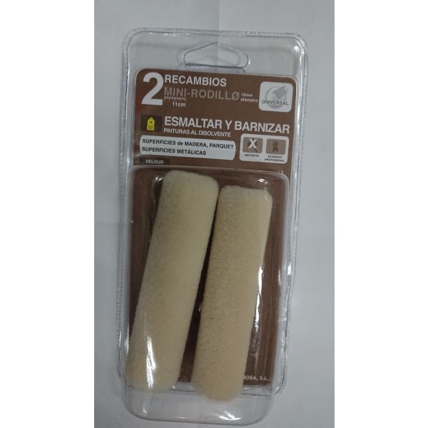 2 RECAMBIOS MINI RODILLO VELOUR 11 cm ESMALTAR Y BARNIZAR AL DISOLVENTE