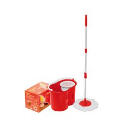 Fregona/mopa fácil de escurrir gracias a la fuerza centrífuga que deja el mocho extraseco. CONJUNTO DE FREGAR ROJO DUETT