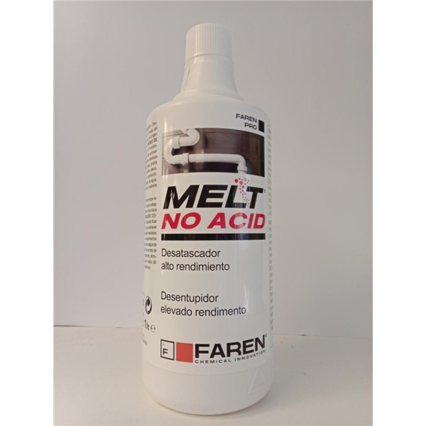 MELT NO ACID se trata de un producto de formulado “básico” de alta concentración. Actúa a través del agua estancada y mantiene limpios los desagües eliminando las fuentes causantes de los malos olores. SEGURO para las tuberías. LIBERA LOS ATASCOS: de desagües, lavabos, tuberías, WC, duchas, bañeras, etc.