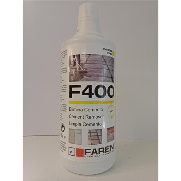 F400 es óptimo para limpiar y eliminar los restos de obra; cemento, etc. O bien en casos particulares para eliminar las incrustaciones de cal de instalaciones de agura (serpentinas). Se disuelve muy bien en agua