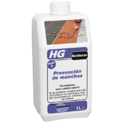 Es un producto que protege contra prácticamente todas las manchas líquidas posibles, como, por ejemplo, de vino, cola y demás, y contra manchas aceitosas y suciedad. Incluso se protegen las superficies muy porosas hasta lo más profundo de los poros. Por todo esto es ideal para aplicar en el salón, la cocina, el cuarto de baño, etc. Limpiar la superficie de antemano. Limpiar azulejos de cerámica, granito, pizarra, y demás con HG limpiador profesional para suelos porosos y no porosos. Limpiar mármol y tipos de piedra caliza con HG Limpiador profesional marmol. Limpiar suelos de baldosas no pulidas, como, por ejemplo, gres (no) pulido y porcellanato, de antemano con HG limpiador profesional uso diario para suelos no esmaltados. Aplicar HG prevencion de manchas abundantemente mediante una brocha o rodillo. En caso de superficies muy porosas se recomienda una segunda aplicación. 1 litro de HG prevencion de manchas sirve para 100 m². Todos los productos de mantenimiento de HG, indicados para la superficie específica, se pueden utilizar sin problema.