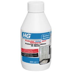 HG protector -total- para mamparas evita la adherencia de cal y otra suciedad debido a por ejemplo sebo, restos de jabón, aceite de baño, etc. y facilita con ello en gran medida el mantenimiento de la ducha. HG protector -total- para mamparas es adecuado para todos los materiales y se puede aplicar por tanto en azulejos de pared, material sintético, aluminio, cerámica, cromo, cristal, plexiglás, etc. La superficie a tratar debe estar limpia y seca. Echar HG protector -total- para mamparas en un paño seco y ungir con fuerza haciendo movimientos circulares que se traslapan. Si es la primera vez, repetir el tratamiento al cabo de aproximadamente 2 minutos. A continuación sacar brillo con un paño suave y seco. HG protector -total- para mamparas se puede usar de modo ilimitado sin que por ello se forme una capa.