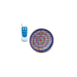 Lámpara leds 11 colores con mando: 11 colores fijos que incluyen el blanco y 5 programas automáticos. El control se efectúa por un mando a distancia que asegura una conexión y una sincronización perfecta. En la primera utilización es necesario efectuar una sincronización del mando a distancia con una o varias lámparas instaladas en la piscina.