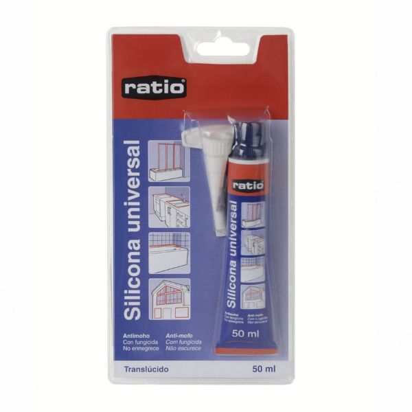 Silicona ácida con fungicida para acristalamiento, carpintería, sellado en baños, cocinas, etc. Excelente adherencia sobre vidrio, aluminio, cerámica, superficies vitrificadas y otros materiales no porosos. Translúcida. 50 ml.