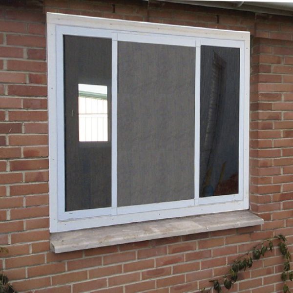 Estructura de aluminio blanco. Colocación en las guías de la ventana. Ventana 70x130 cm
