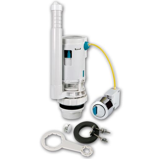 - Ahorra agua. Permite el control total de ambas descargas (total-parcial) gracias a que ambos volúmenes son regulables (parcial 1,5-3,0 l. y total 4,2-6,0 l.) - Seguro. Rebosadero extensible que evita inundaciones accidentales en caso de fallo del grifo flotador de entrada. - Versátil. La transmisión por cable permite ubicar el pulsador en cualquier posición. - Base universal. Se adapta a la base existente en su cisterna, por lo que no requiere desmontar la cisterna. - Conjunto completo. Incluye pulsador con anillo de montaje superficie-empotrado, mecanismo accionado por cable, tornillos fijación y junta cisterna, embellecedor tapa-agujero lateral cisterna y llave de apriete