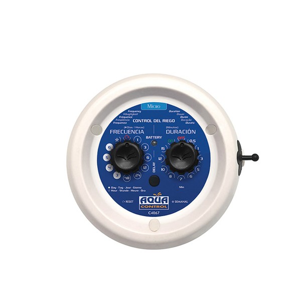 Con bomba programable, adaptador, filtro y tubo aspiración, 10 tes distribución 4 mm, 10 goteros, tapón microtubo 4 mm, 10 soportes microtubo, 10 m microtubo, cable carga USB y soporte/colgador. Hasta 10 macetas.