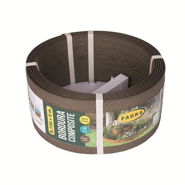 Polietileno 80% Madera 20%. Fácil corte. Incluye 6 estacas Color madera oscuro.